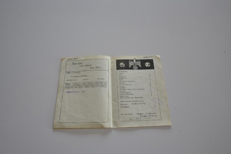 Superbe et rare livret Zeugnisheft de jeune hj de 1935 rempli et avec différente organisation au cours au cours des anses fini en 1943.