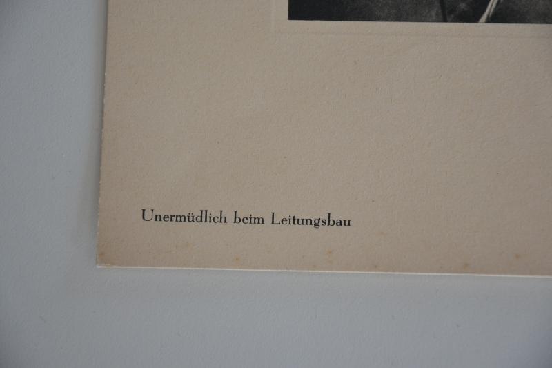 Lithographie d'un soldat de la Wehrmarcht qui a l'insigne de l'assaut avec la phrase ( Unermudlich bien Leitungsbau ( Infatigable dans la construction de pipelines )
