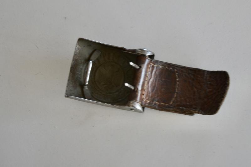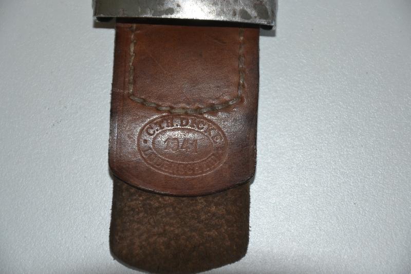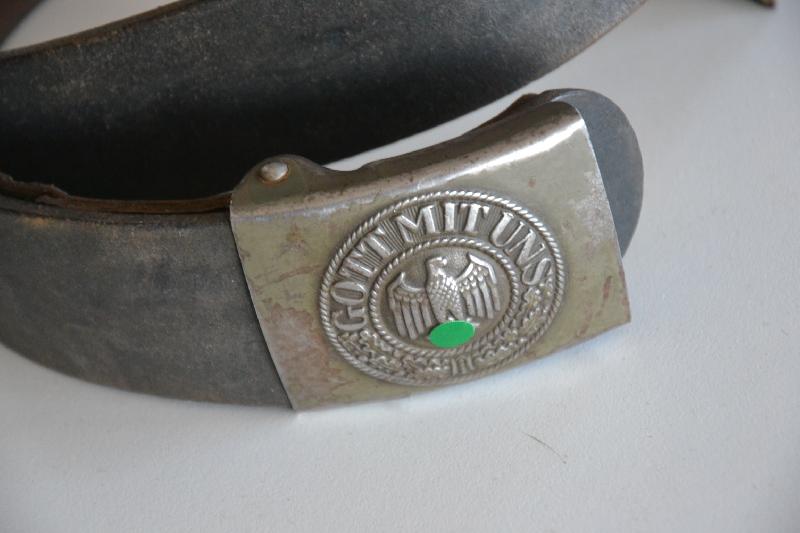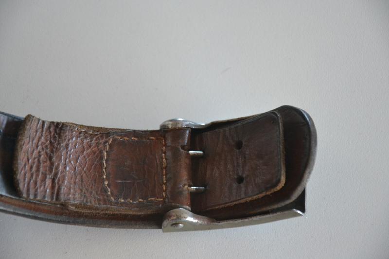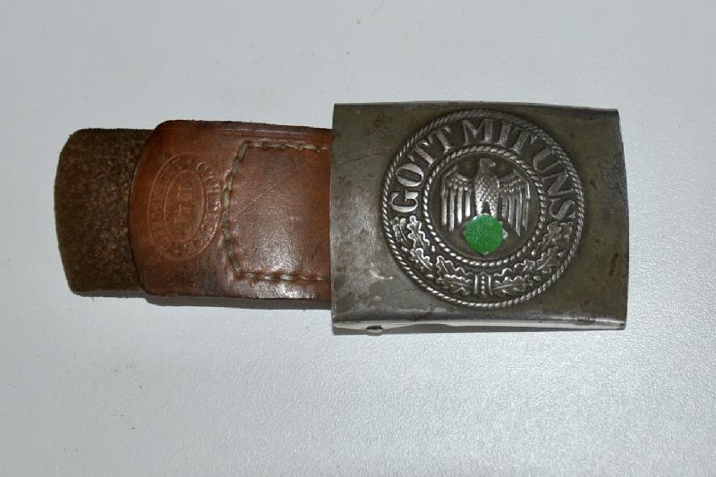 Ceinturon de la Wehrmacht avec cuir taille 110 et boucle fer couleur Feldgrau encore bien présente avec fabricant sur la boucle et le meme sur la patellette CDT 1941.
