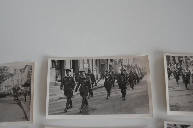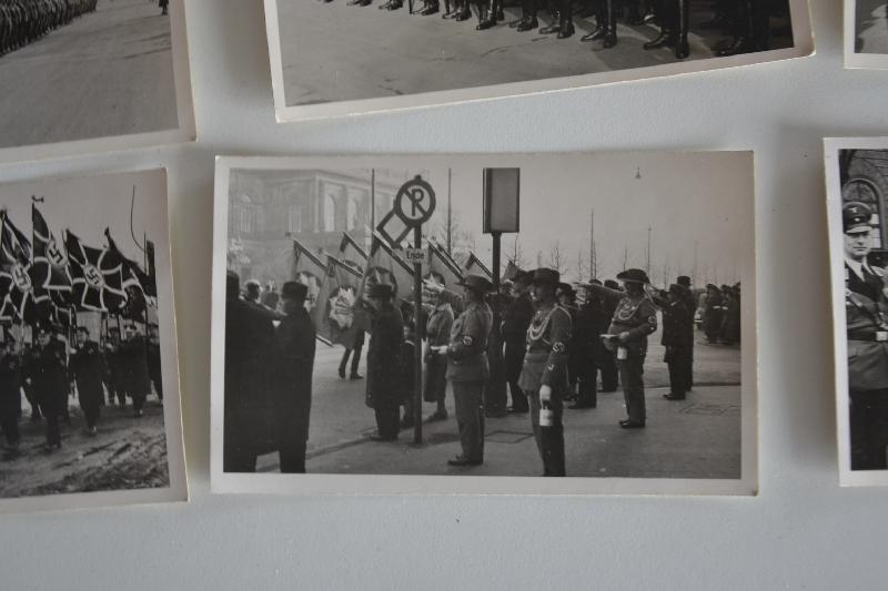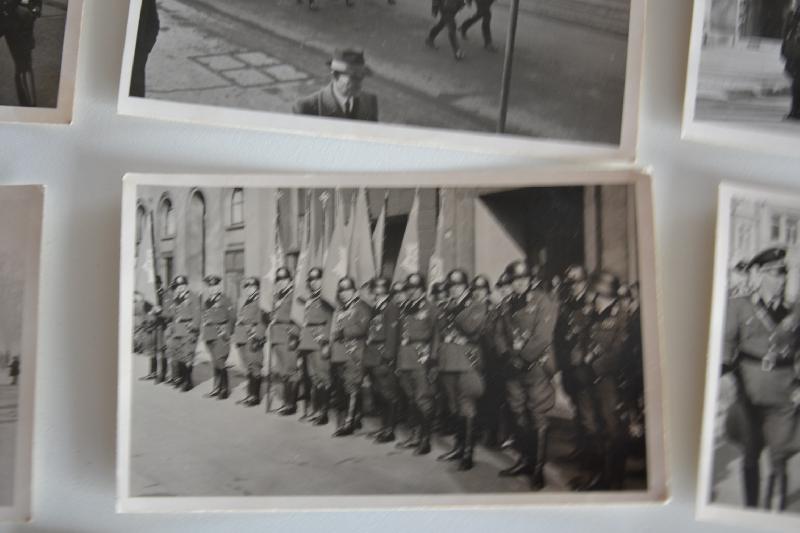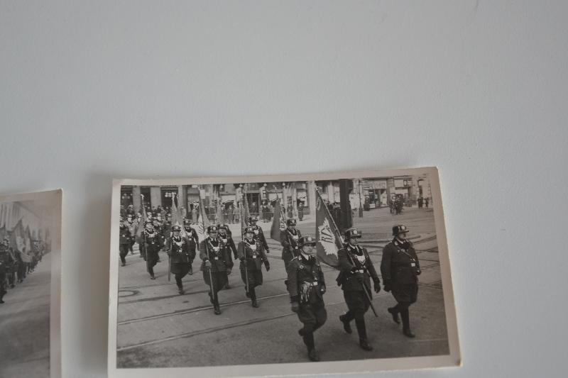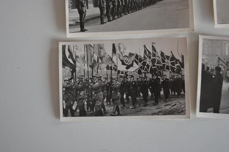12 cartes postales avec deux nombreux détail dont un placard incroyable, casque avec insigne , drapeaux etc..