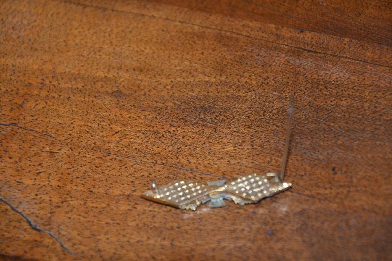 Petite broche patriotique allemande avec des morceaux d'obus et une croix de fer émaillée 1918 le tout dorée et en superbe état.