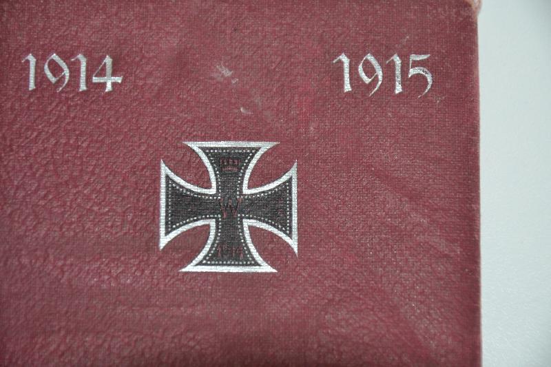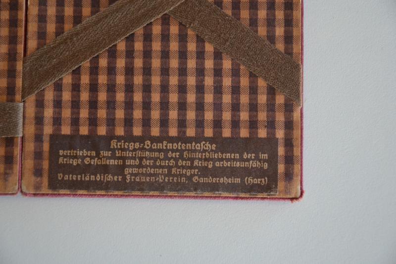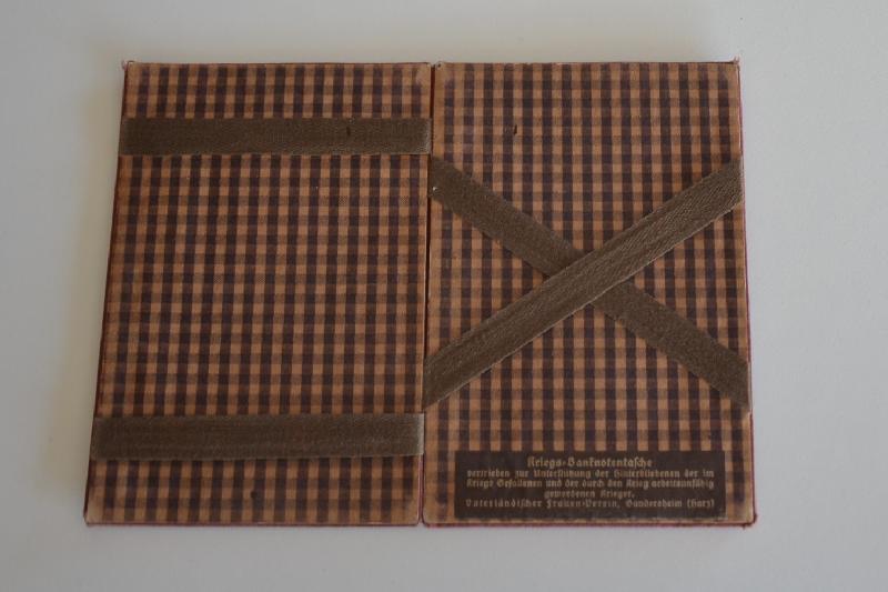 Porte billets allemande de 1914 offert par les femmes patriotiques avec sur la couverture la croix de guerre de 1914 de couleur rouge.