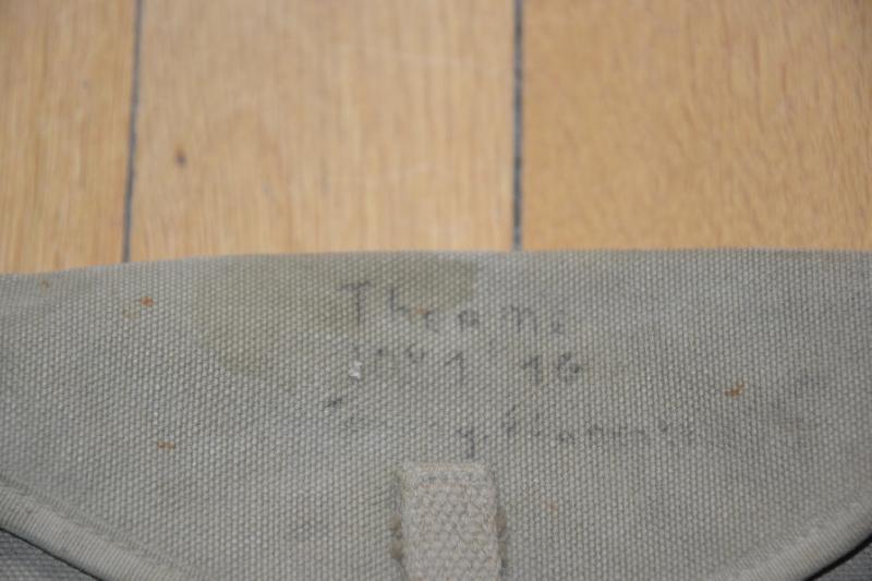 Superbe havresac US mdle 1928 complet avec sa pochette pour la gamelle et le carrier M1928 pour la demi tente plus le nom sur la pochette en superbe état.