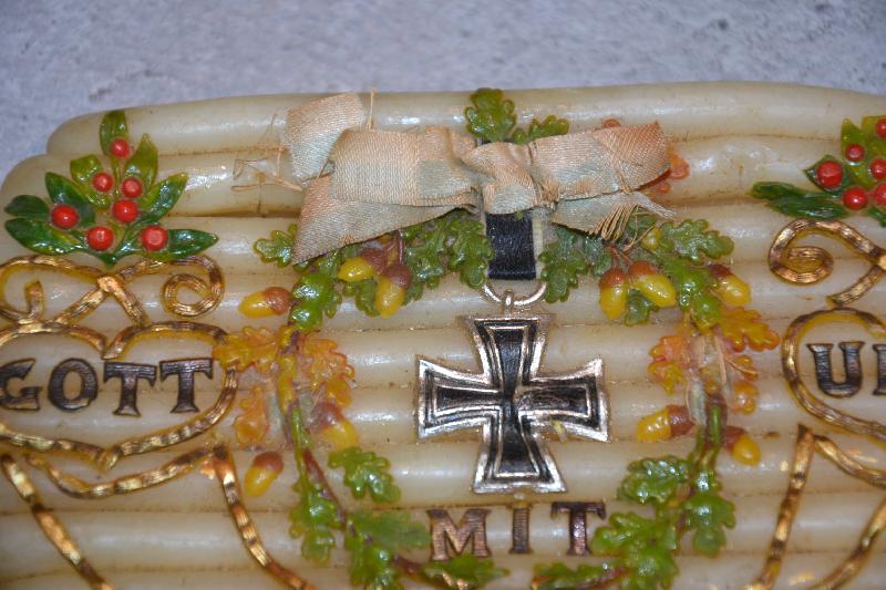 Bougie allemande de 1914 pour Noel avec un noed en tissu et croix de fer , marquage GOTT MIT UNS.