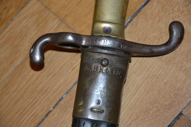 fourreau en cuir et laiton impeccable mais pas au meme numéro que la baïonnette qui est Saxonne du 133 Régiment Infanterie.