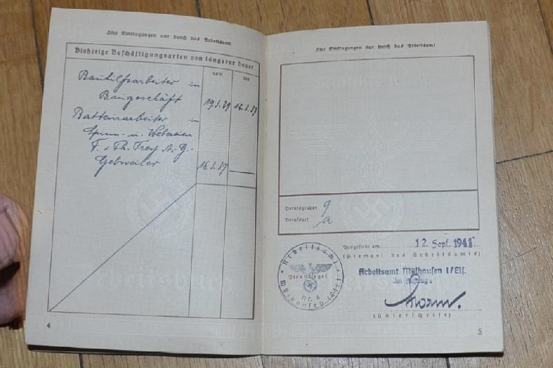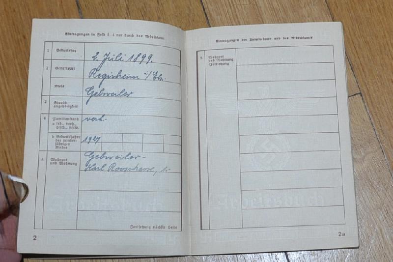 ARBEITSBUCH ALSACIEN GUEBWILLER 1941