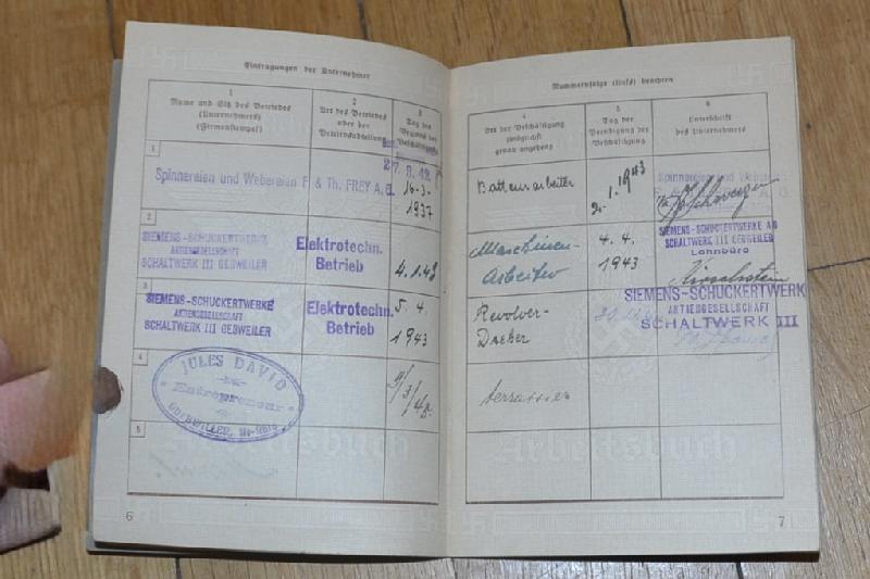 Livret Arbeitsbuch d'un alsacien du Kreis de Guebwiller de1941 qui a travaillé chez SIEMENS.