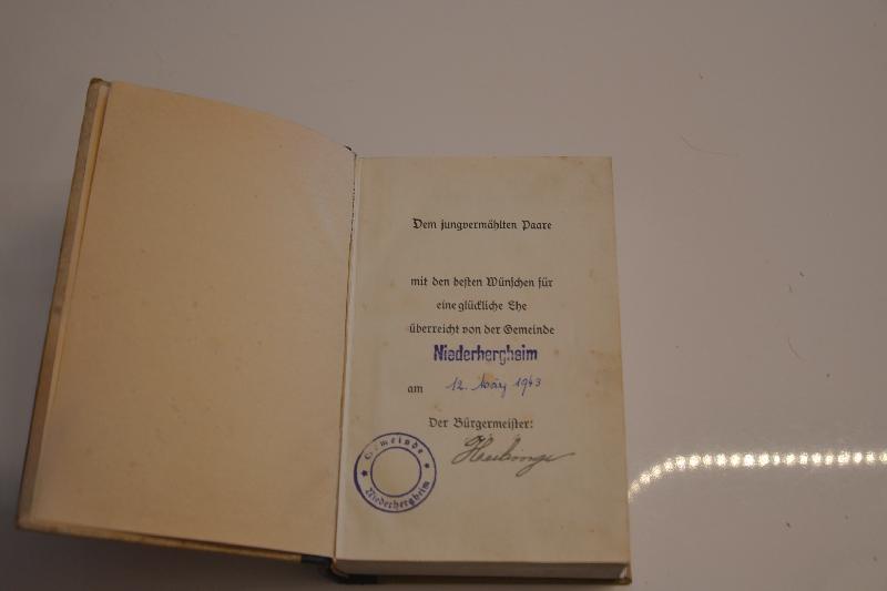 Très beau livre MK de mariage d'une ville Alsacienne du Haut Rhin département 68 NIEDERHERGHEIM daté de 1943 signé par le maire.
