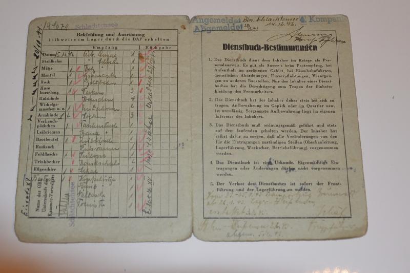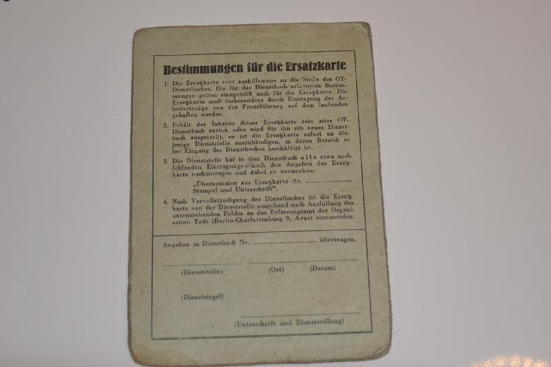 Livret De l'Organisation Todt d'une ville Alsacienne Benfeld proche de Strasbourg , bien rempli .