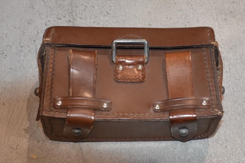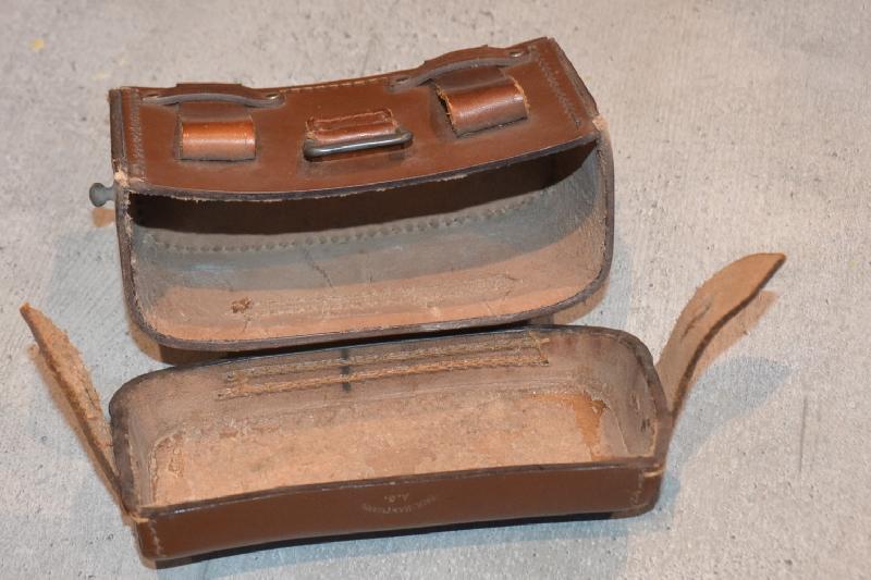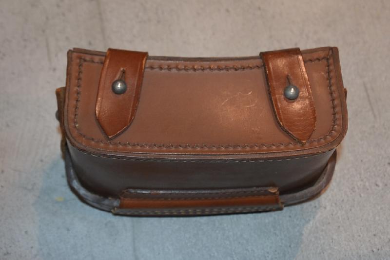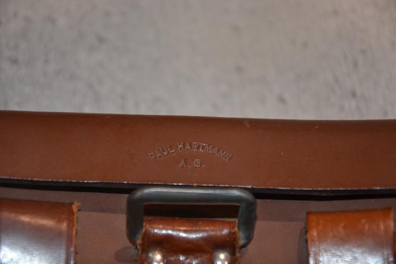 Sublime et très très rare cartouchière Médic HJ ersatz de couleur brune la plus rare avec juste les deux patelletes en cuir le reste en carton bouillie , Fabricant correspondant a un fabricant de pansement.