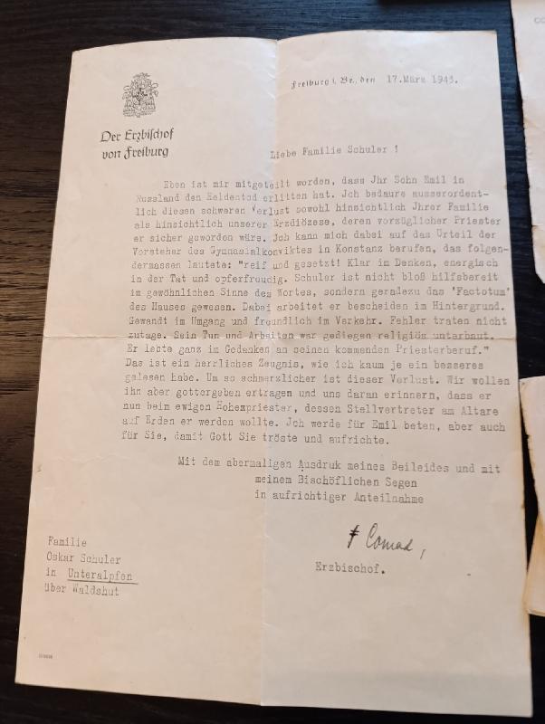 un Wehrpass 9 MAI 1941 ou l'on voit son parcours ces bataille et aussi sont décès en le 7 Févirer 1943 ( le Wehrpass est déssodilarisé de la pochette et les 3 premières pages sont déchiré mais il est complet )