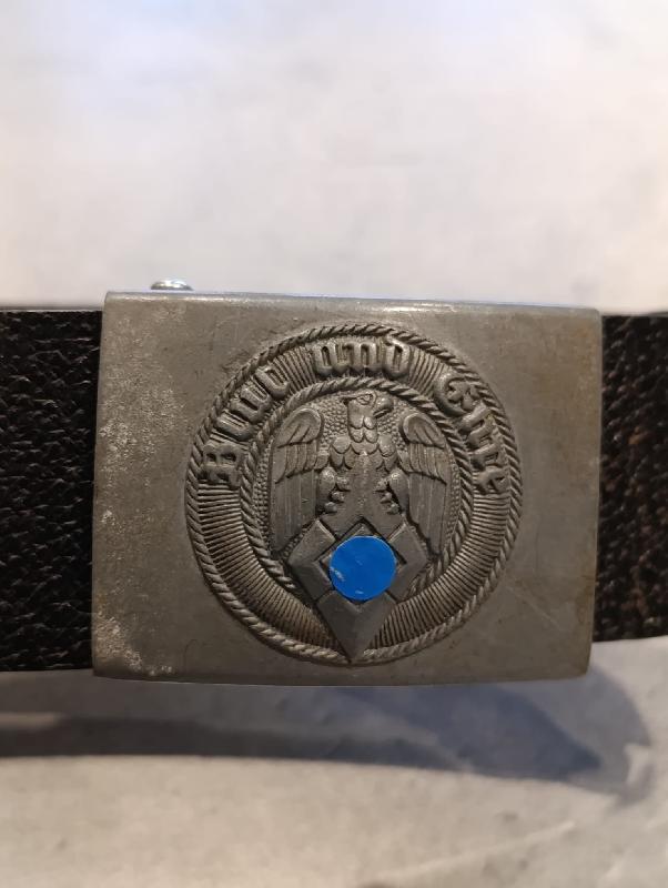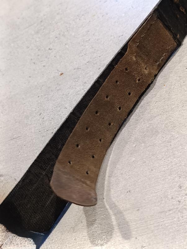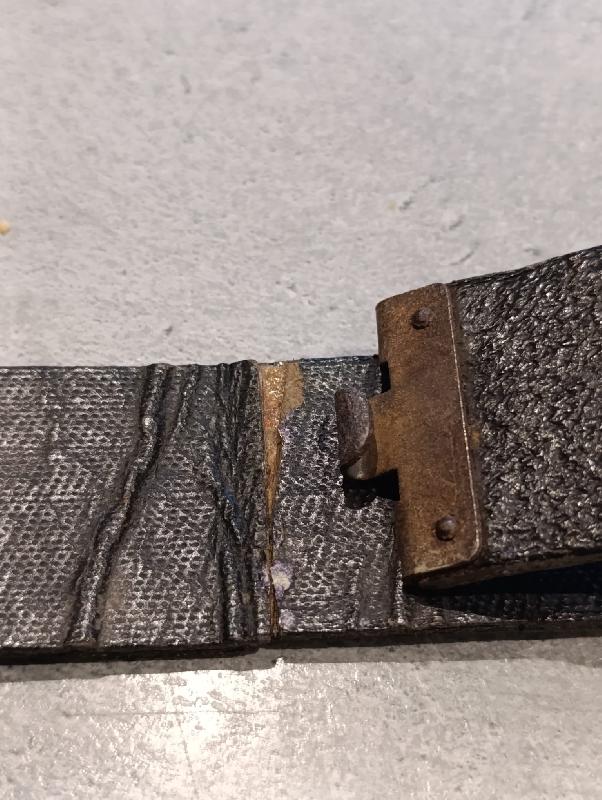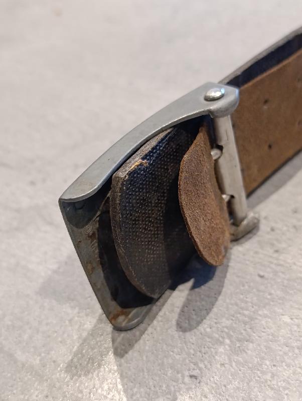 Rare ceinturon HJ en carton compressé dit Ersatz avec sa boucle marqué M4/38 (Richard Sieper & Söhne de Lüdenscheid. ) sorti d'un grenier alsacien proche de Colmar .