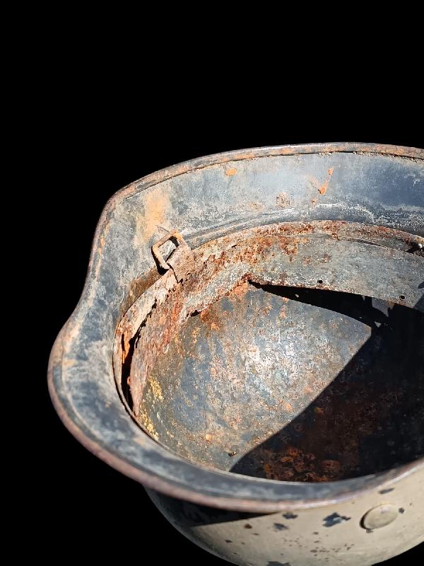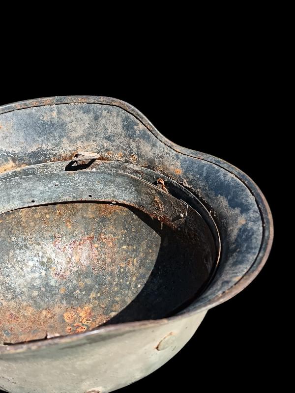 Casque Allemand mle 35 Luftwaffe camouflé deux tons avec ces rivets et son cerclage .Bonne taille .