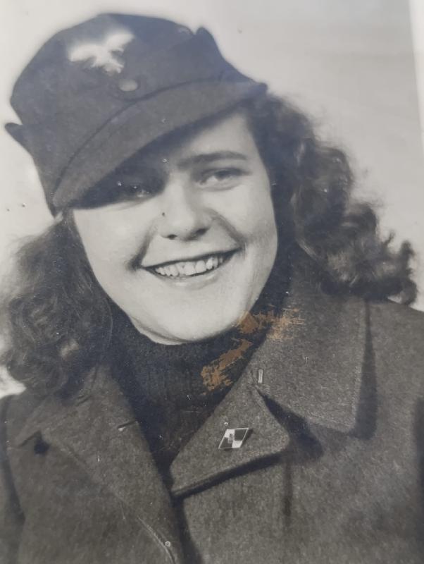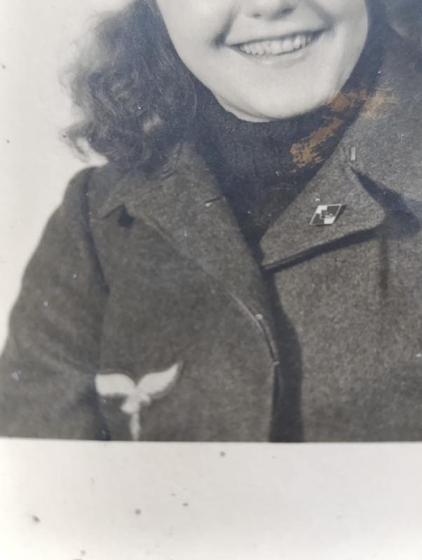 Très rare photo d'une Helferinne dans la Flak qui provient des BDM ( seulement en 1945) et l'on voit son insigne Hj au col.
