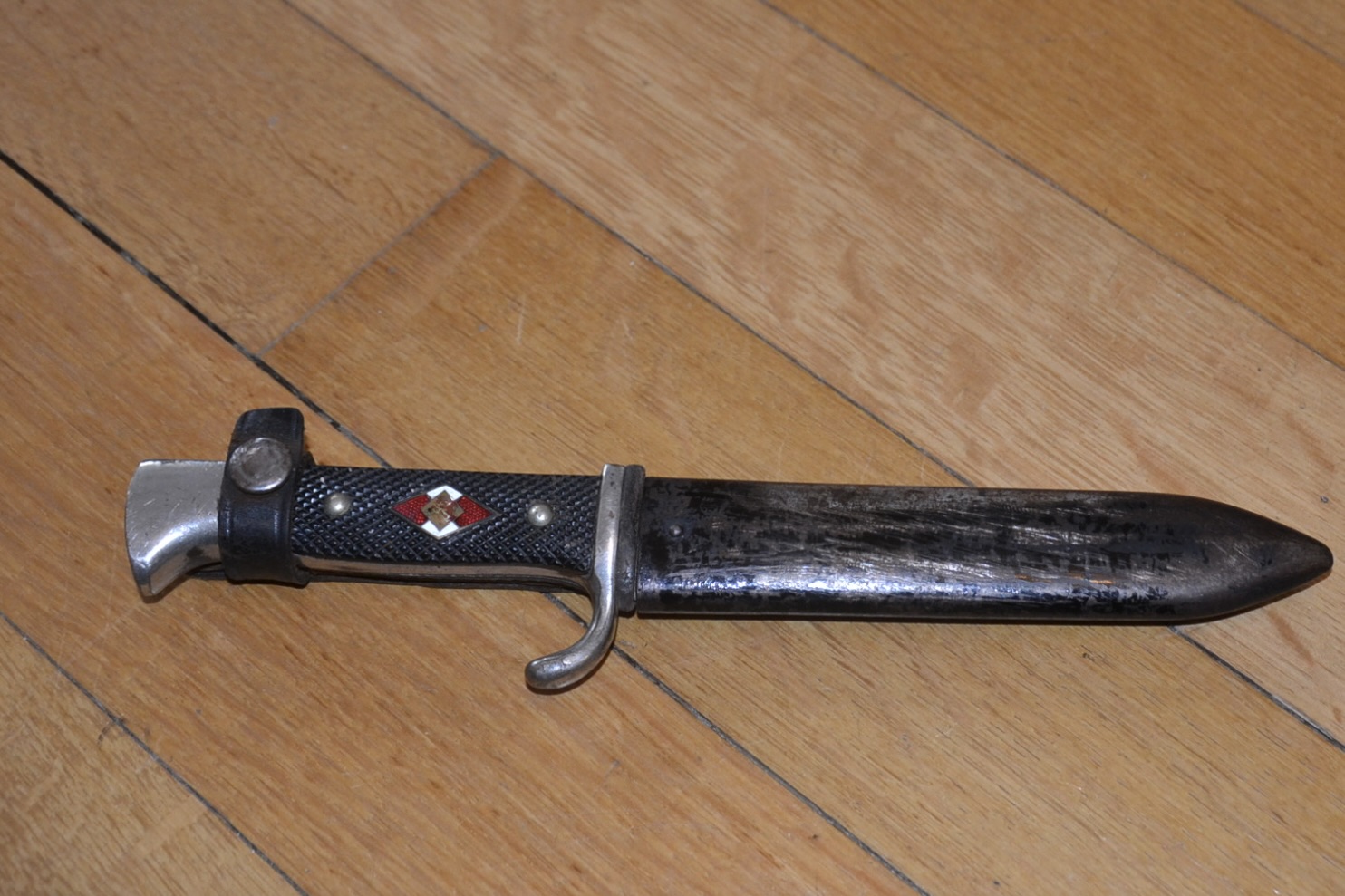 nouveau militaria : COUTEAU HJ AVEC DEVISE ET FABRICANT RARE GRAWISO SOLINGEN